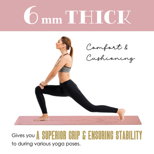 Lotus TPE Non-Slip Namaste Yoga Mat (6mm) Pink